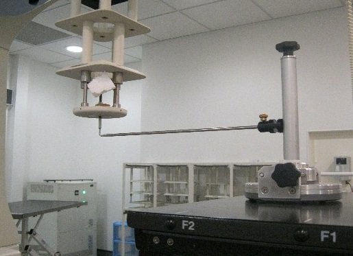 On the 16th April 2013 the laser system at the Glasgow Small Animal Hospital was fully checked for its horizontal and vertical alignment as well as its registration with the machine isocentre and sagital and transverse orientation of the machine. Wall reference marks and a mechanical isocentre pointer were provided.