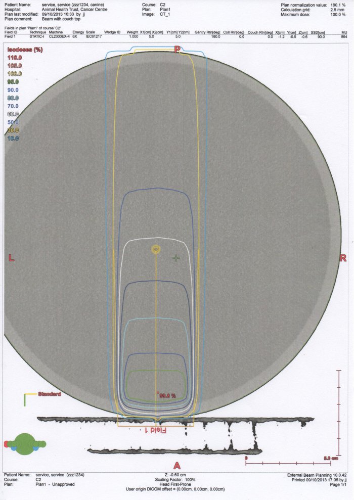 During October 2013 the effect of a novel couch top on Dose Prediction and calibration of the CT scanner for electron density at the Animal Health Trust was completed. Testing involved comparison of dose prediction with and without the couch top and full assessment of HU value versus electron density.