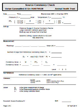 On the 10th April 2014 a novel Source Constancy device which utilises the Distance Guage for the Varian HDR was commissioned. This device provides an independent check on the Constancy of the Radioactive Source and its delivery system. Coupled with the Source Air Kerma Rate (AKR) certificate and the in-house well chamber equipment for AKR measurement this provides a robust source check method contribution to Quality Contro